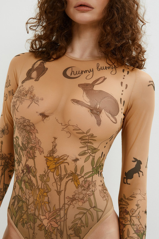 Боди "Brikoly Hunny Bunny" микросетка с эффектом тату, M