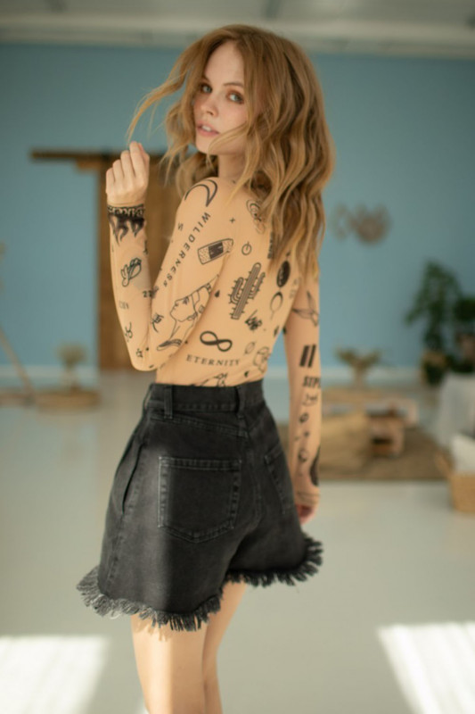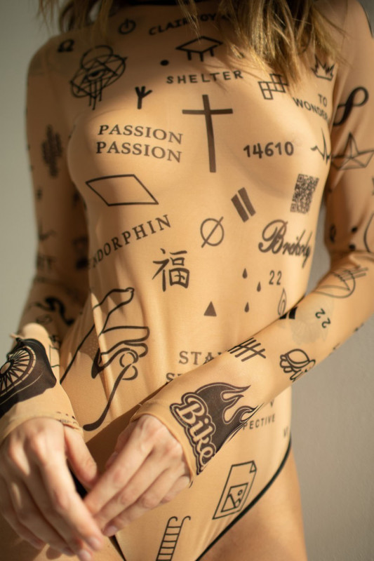 Боди "Brikoly Signs" микросетка с эффектом тату, M