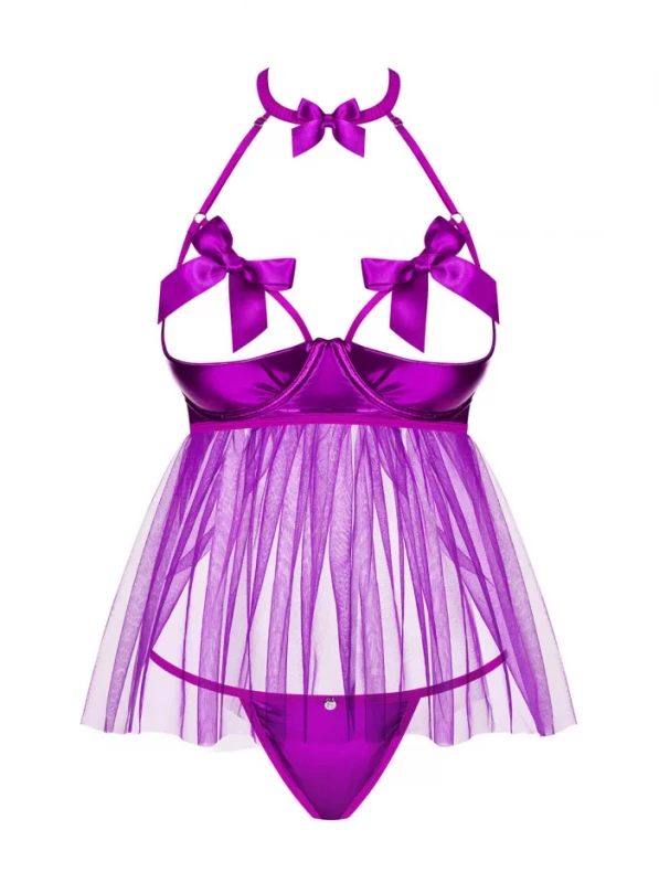 Пеньюар с открытым бюстом "Obsessive Delishya" фуксия, S/M