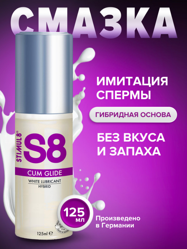 Гель "Stimul 8 Cum Glide" максимально имитирует сперму, при этом не имеет вкуса и запаха, что позволяет использовать его с фаллосами, которые имеют функцию семяизвержения. Гель сочетает в себе длительное скольжение силикона и нежность водной основы! Не скатывается, не создает чувство липкости и вязкости. Отлично смывается водой