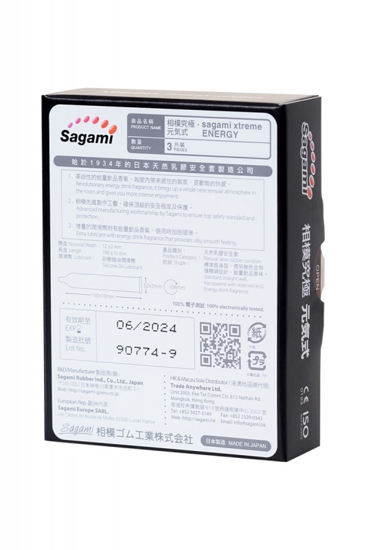 Презервативы тонкие "Sagami Xtreme Energy Drink" со вкусом энергетика, 3шт