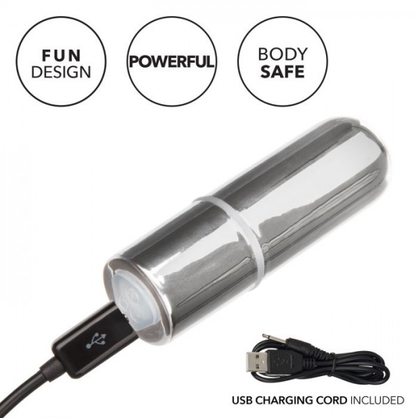 Вибропуля перезаряжаемая, что обуславливает потрясающую мощность! Зарядное устройство с USB-разъемом входит в комплект