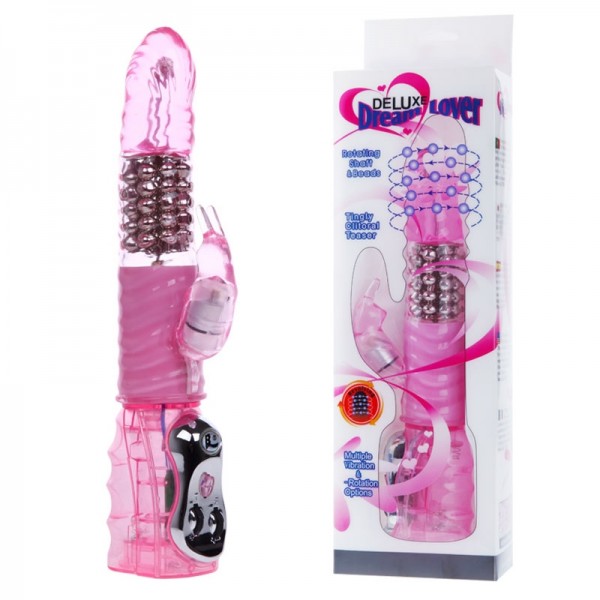 Вибратор-ротатор "Deluxe" классический хай-тек в нежно розовом цвете. Ярко выраженная головка, складки, имитирующие крайнюю плоть, блок металлических шаров и клиторальный зайка обещают неземные ласки клитора и лона одновременно!